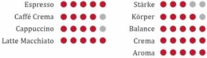 The crema color is reminiscent of teak, with mahogany highlights. The crema has an excellent density and a brilliant body. Perfectly balanced. The aroma is robust and full. The taste is slightly syrupy, with the smooth, typical taste of chocolate and a barely noticeable acidity. A coffee without equal.